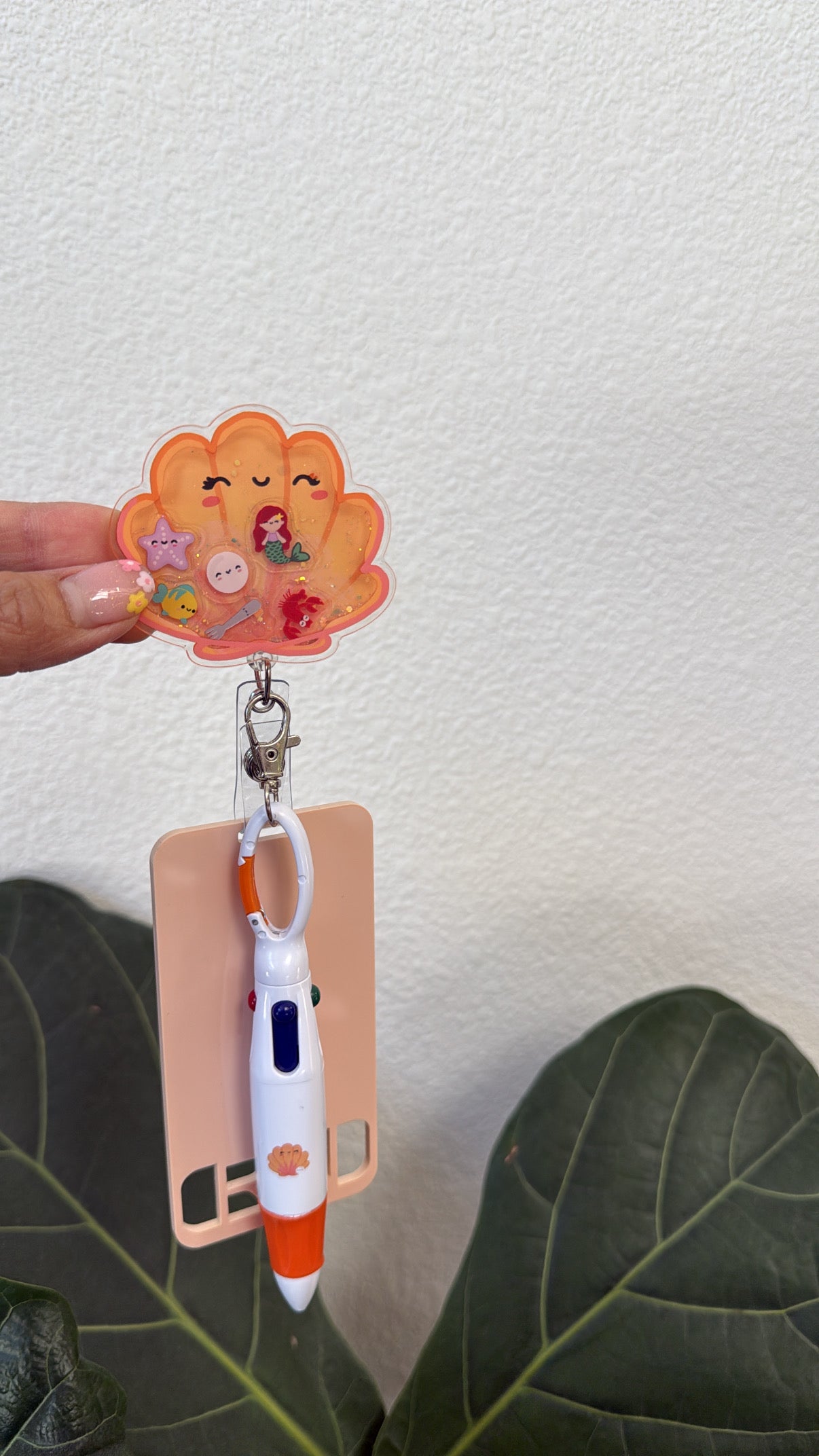 Red ♥️, Blue 💙, Green 💚, Black 🖤 ballpoint ink pen. I added a silver clasp on it as well so it's easier to take on and off your badge if you chose to put it there!