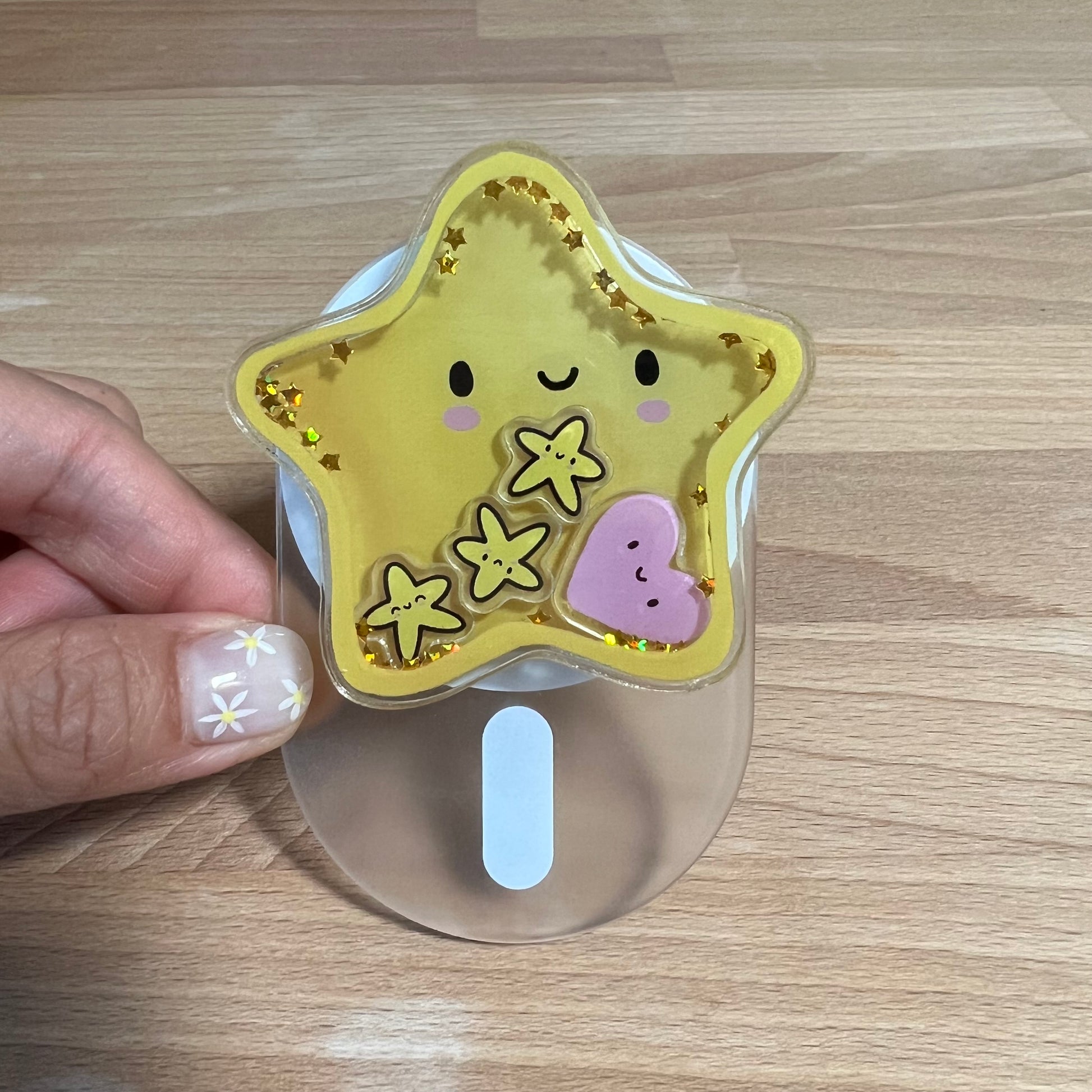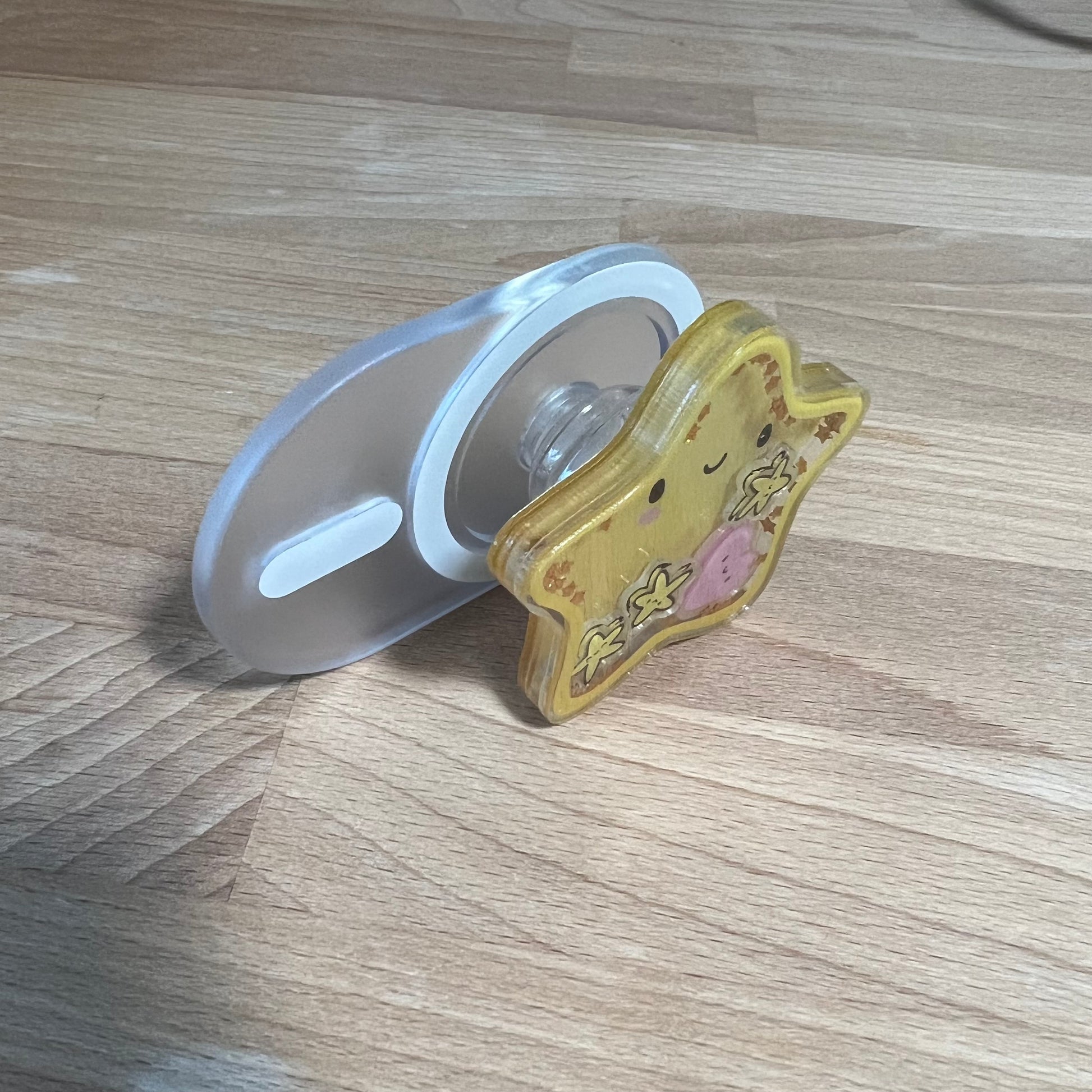 Mag safe phone grip. Metal adhesive included for those without a mag safe case. Available in "Great Job Star" shaker design.