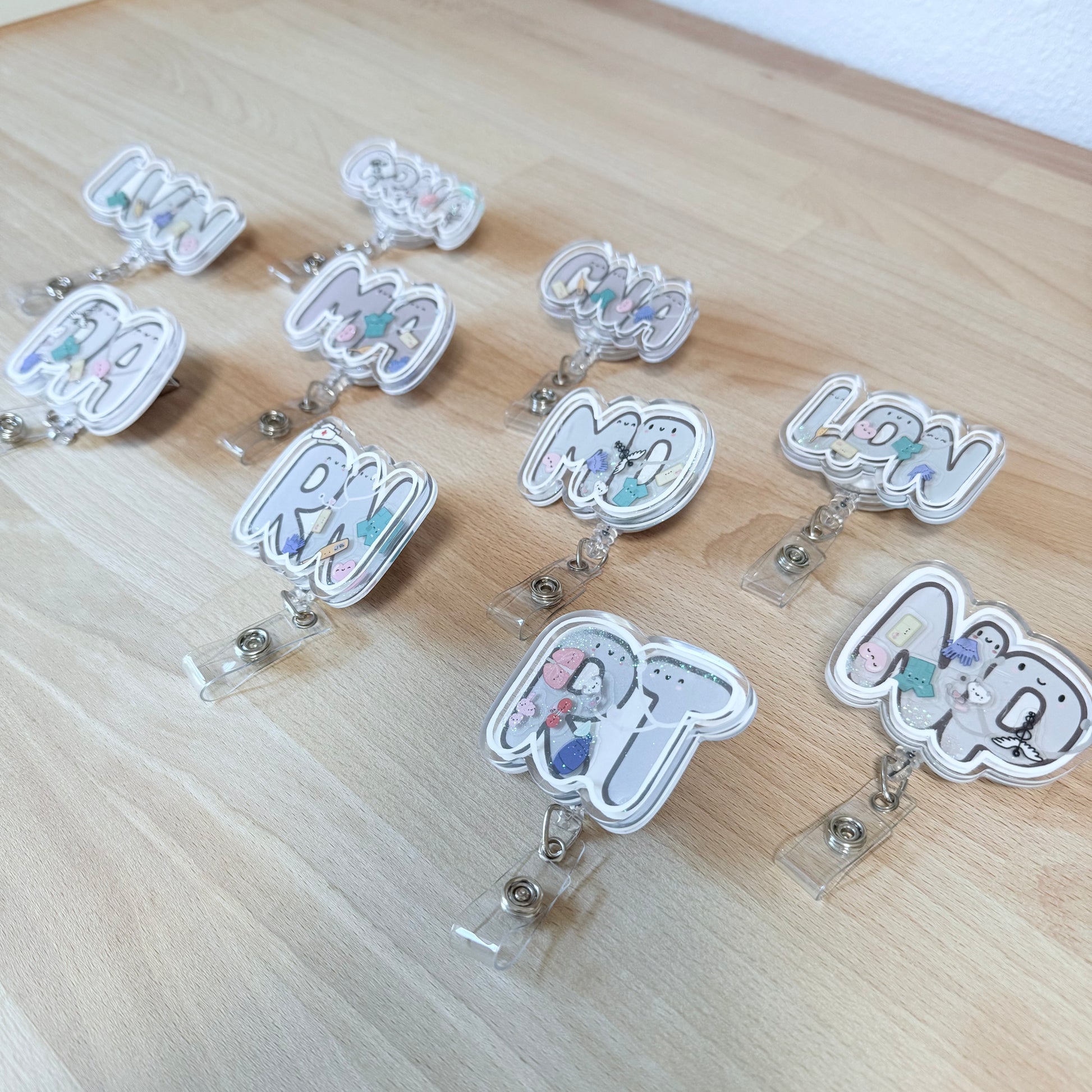 Liquid Title Badge reels, item float inside. Small clear glitter inside as well ✨