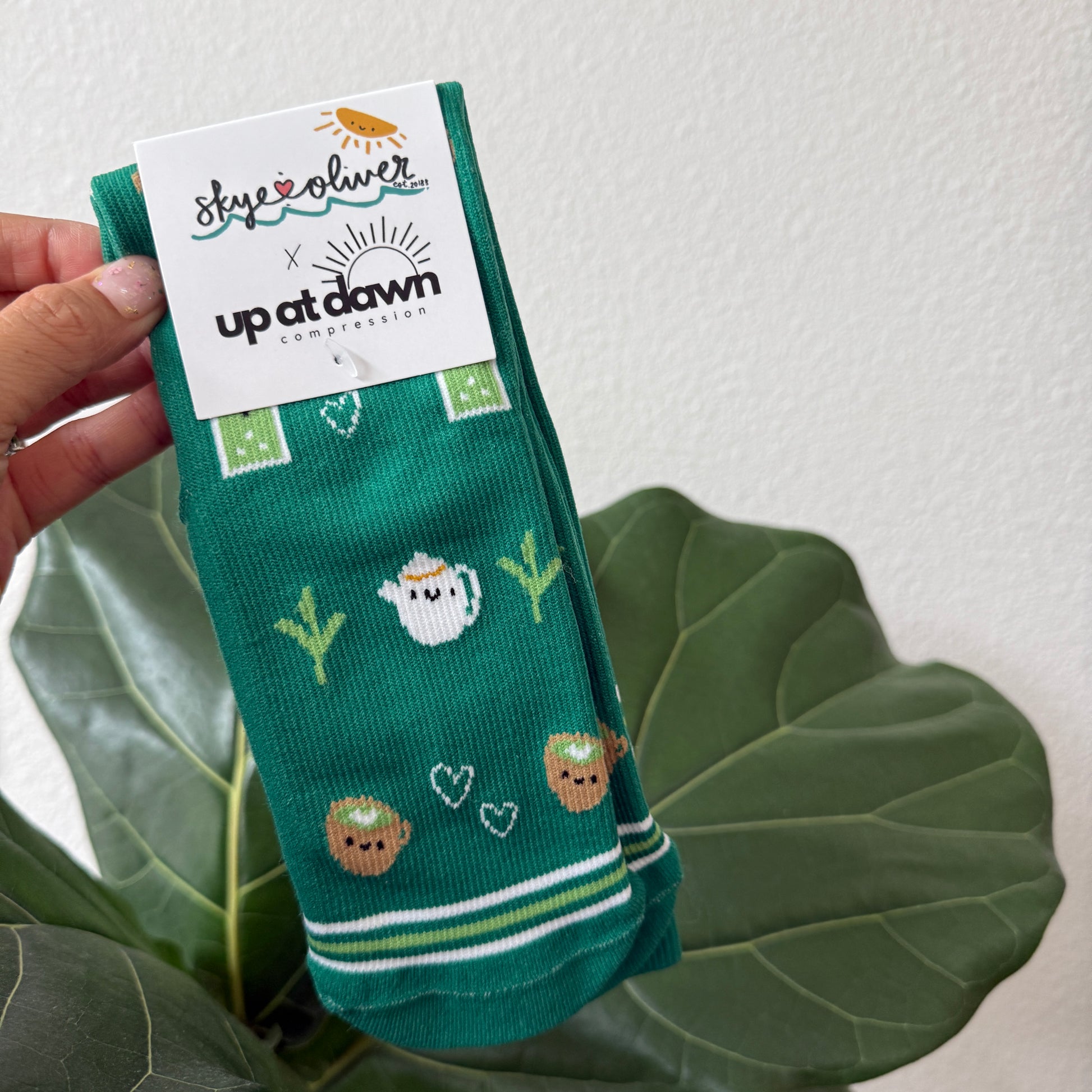 The cutest matcha sock collab ever! Matcha theme with cute matcha items throughout!