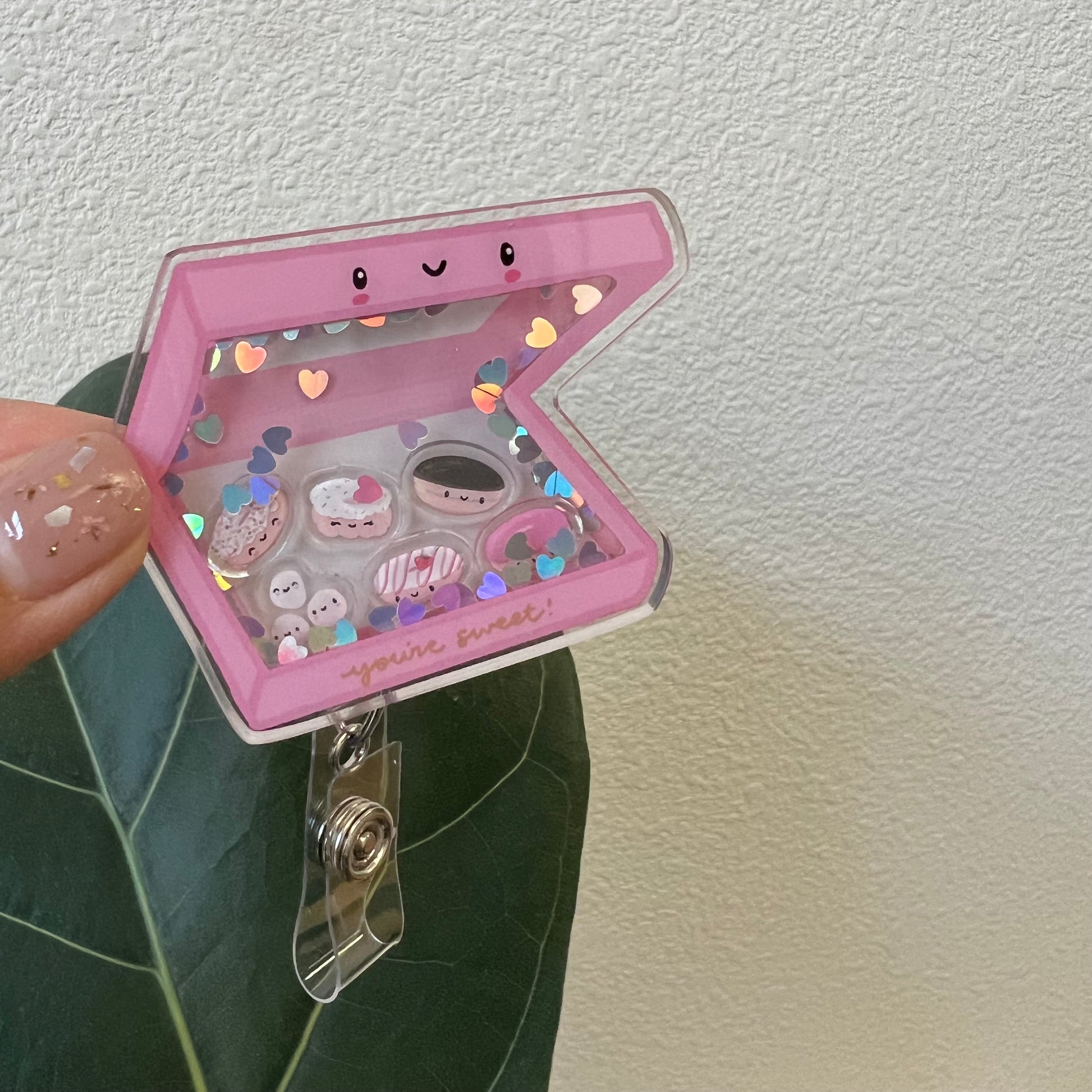 This is a shaker design of 6 different types of yummy donuts, plus glitter. 🍩