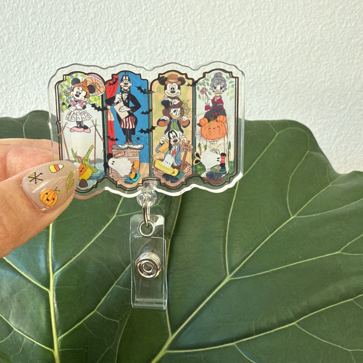 The spookiest collab with @wonder_doodles! Mansion with floating pieces of pumpkin, candle, ghosts, and candy corn. Black heart glitter inside too! Super cute, sturdy, and wipeable badge reel. Measures 2.5" in length.