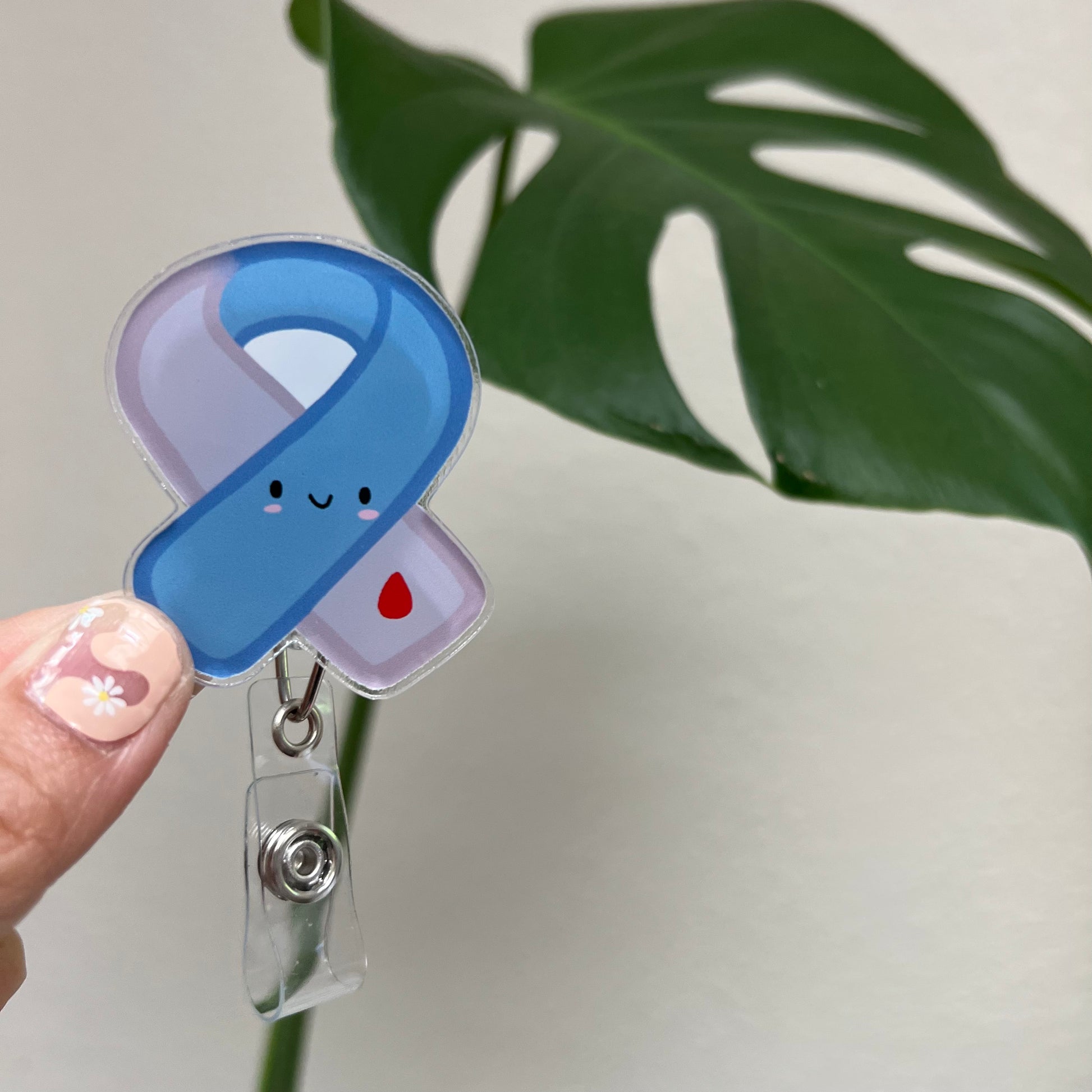 Acrylic (wipeable) design on top a clear badge reel. Acrylic piece measures 1.45"x 1.85". Available in Alligator and Slide clip