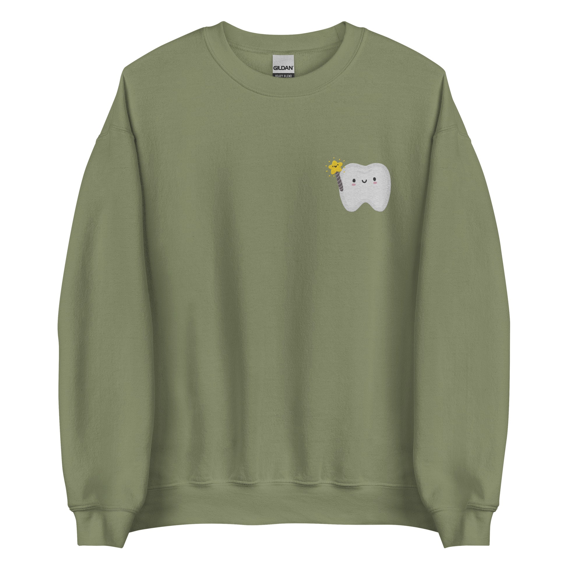 TOOTH Embroidered Unisex Sweatshirt. A sturdy and warm sweatshirt bound to keep you warm in the colder months. A pre-shrunk, classic fit sweater that's made with air-jet spun yarn for a soft feel and reduced pilling.